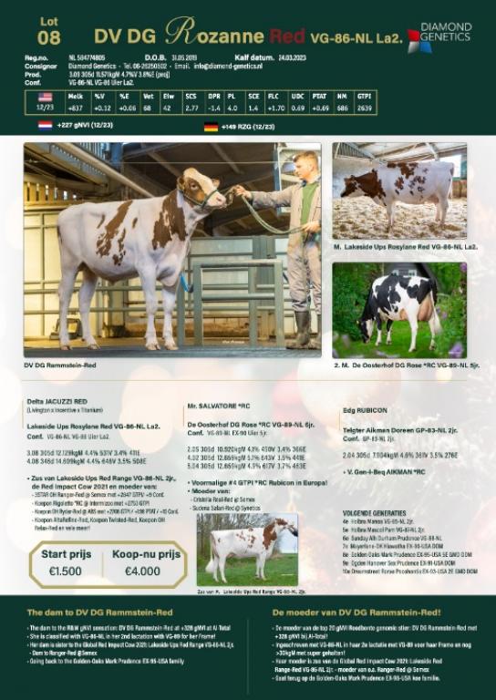 Inschrijving 08-12-2023: Frame VG-89, Type VG-89, Uier VG-87, Benen VG-88 Totaal: VG-88-NL 2jr.