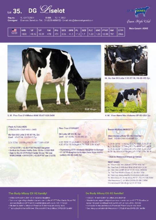 Production: 305d 7.591kgM 5.3%F and +3.9%P (Proj)