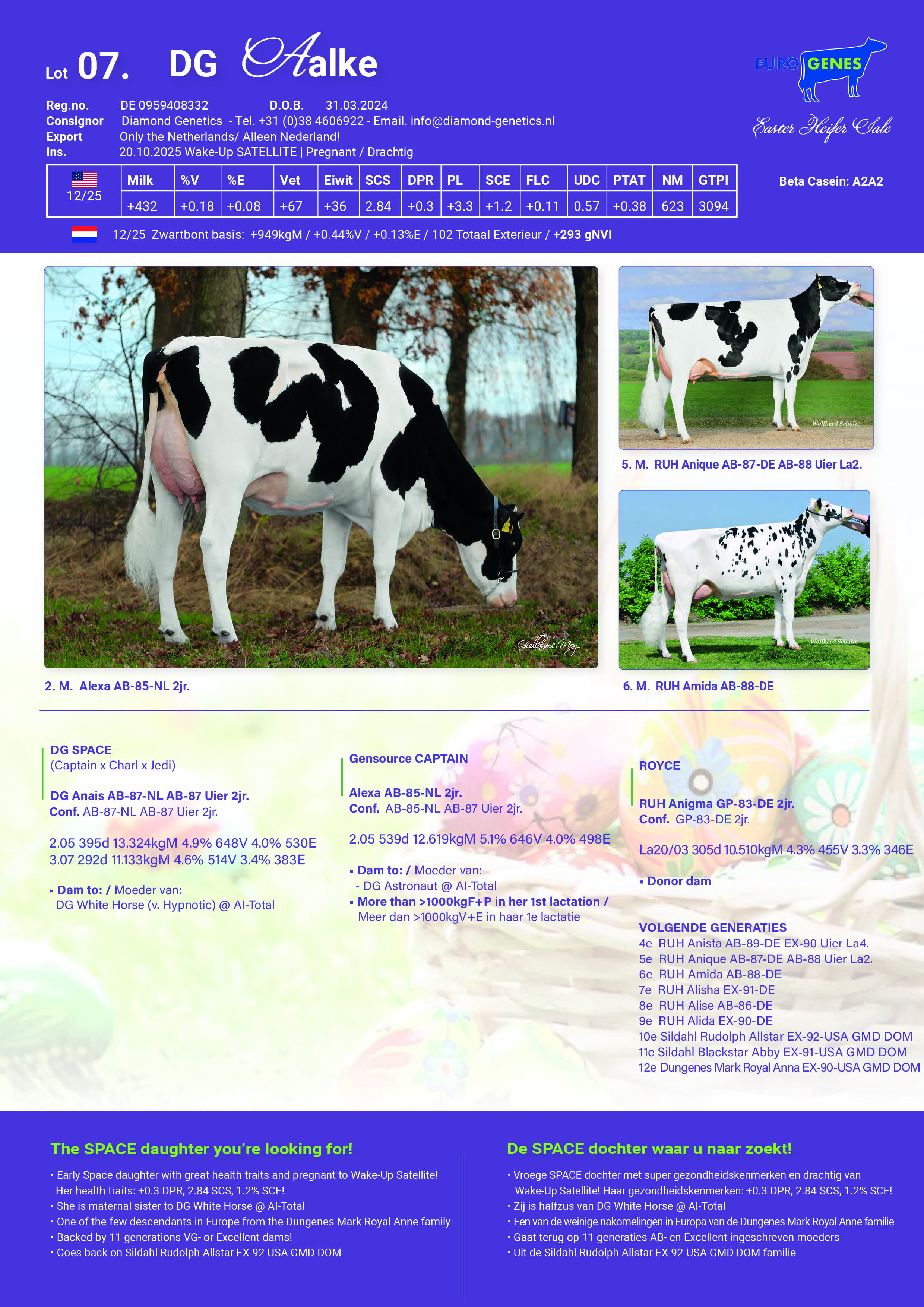 Sire: DG SPACEDam: DG Anais AB-87-NL AB-87 Uier 2jr.